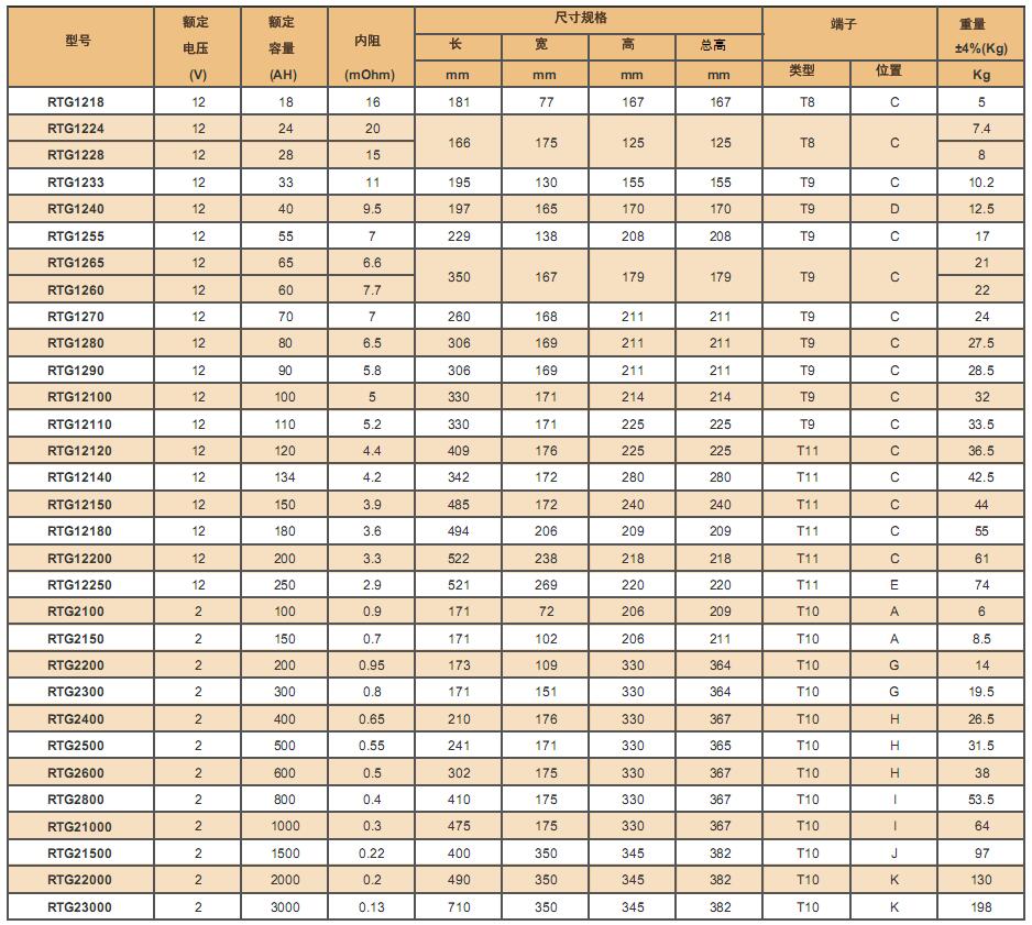 深循环胶体蓄电池RTG(6GFMJ)系列产品型号